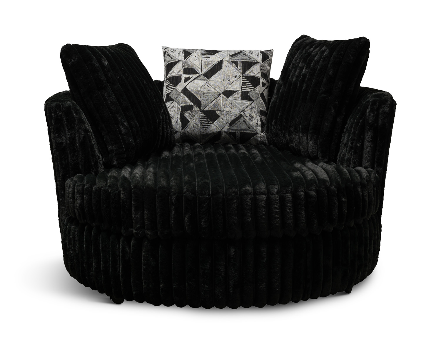 Upgrade your relaxation game with the Twilight Swivel Chair from DOCK86! Crafted with a durable engineered hardwood frame and high resiliency foam, this chair offers the perfect blend of comfort and style. The steel spring suspension ensures lasting support, while the oversized design and casual black fabric add a touch of modern sophistication to any space. Whether you're lounging with a book or catching up on your favorite show, the Twilight Swivel Chair promises a cozy retreat like no other. Elevate your home decor with this chic and comfy essential today!