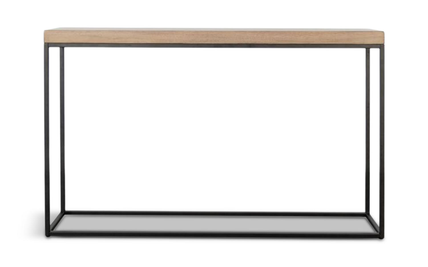 Introducing the Jax Large Console from DOCK86! This versatile console table is the perfect addition to your living space. With its hazelnut-finished top and sleek black metal base, it effortlessly combines style and functionality. The simple design allows it to seamlessly fit into any home's design aesthetic, whether you prefer a modern, industrial, or urban look. Ideal for displaying your favorite décor items, this console table fits perfectly behind a sofa or along a wall. The combination of metal and wood materials adds a touch of warmth and urban charm to your space.