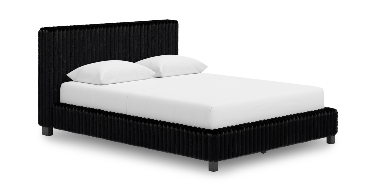 Introducing the Moonlight Mist Upholstered Bed - where modern style meets casual comfort in a glamorous twist! Crafted with solid wood components in a sleek black frame, this bed exudes sophistication and stability. The foam cushioning wrapped in soft and thick polyester corded fabric ensures a plush and cozy experience every time you lie down. Say goodbye to the hassle of box springs, as this bed is designed for convenience and simplicity. The Moonlight Mist Bed is perfect for those seeking a chic and contemporary bedroom upgrade. Its panel design adds a touch of elegance, while the black color brings a bold and stylish statement to your space.