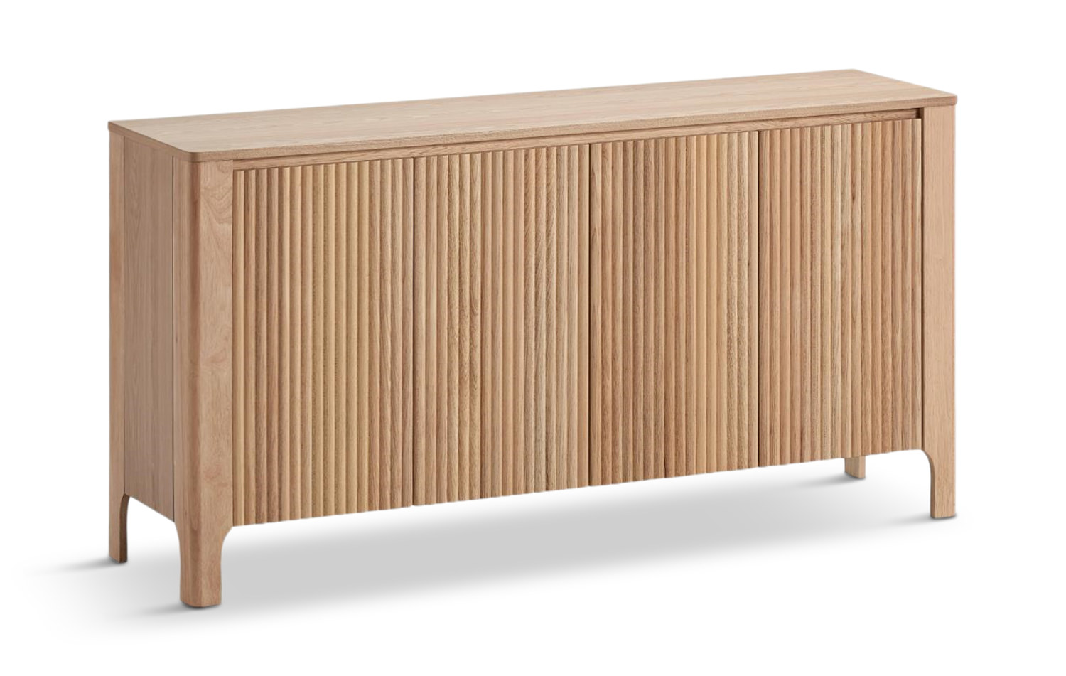 The Danika Sideboard is a stunning piece that effortlessly marries modern style with classic elegance. Crafted with hardwood solids and oak veneers, this sideboard features reeded front doors that add a touch of sophistication to any space. The exquisite white oak finish and light color palette bring a sense of lightness and airiness to your home décor. Say goodbye to noisy slamming doors thanks to the soft close door hinges, ensuring a quiet and seamless user experience. Whether you're storing dinnerware, linens, or other essentials, the Danika Sideboard offers ample storage space to keep your belongings organized and easily accessible.