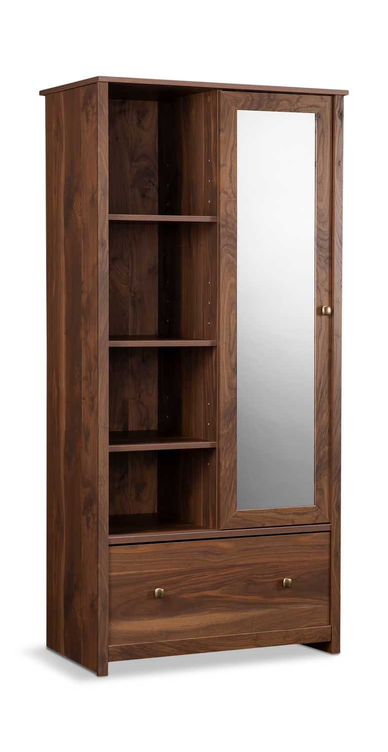Add a touch of elegance and functionality to your bedroom with the River Ranch Armoire from DOCK86. This armoire, available in two colors, features a sliding door with safety tempered glass for easy access to your belongings. With three adjustable shelves and a storage drawer with metal runners, you'll have plenty of space to organize your wardrobe. The garment rod included allows for convenient hanging storage. The trendy finish and casual style of this armoire make it a versatile addition to any room. Customer assembly is required for this armoire, but the end result is sure to impress.