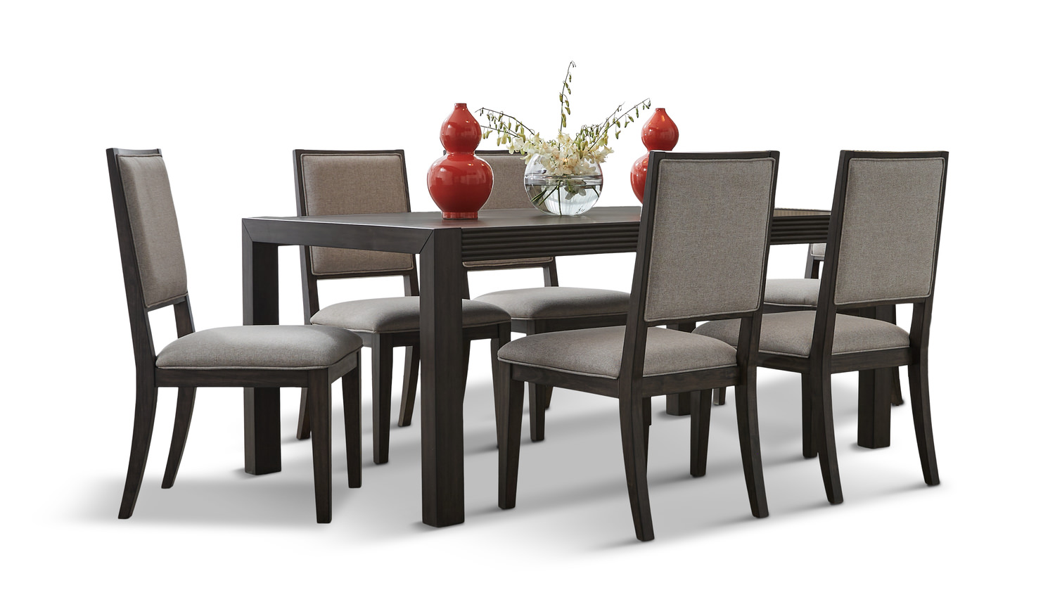 Experience the epitome of modern luxury with the Liam Dining Table from DOCK86. Crafted from solid rubberwood and melamine, this exquisite dining set exudes sophistication and durability. The sleek and chic design of the upholstered chairs perfectly complements the dark finish, creating a stunning centerpiece for your dining room. Seating 4 to 6 guests comfortably, the rectangle-shaped Liam Dining Table is ideal for intimate gatherings or lavish dinner parties. Assembly required.