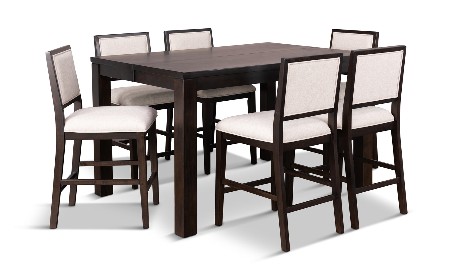 Transform your dining space with the elegant and versatile Oscar Counter Table from DOCK86. Crafted from a blend of hardwood and veneer, this modern masterpiece features a sleek black color with a dark finish that exudes sophistication. The table expands effortlessly from 42 inches to 60 inches with the included 18-inch leaf, accommodating your needs for intimate dinners or larger gatherings. Standing at a counter table height of 36 inches, it comfortably seats 4 to 6 guests and is perfect for both casual meals and formal occasions. The sleek and sturdy legs add a touch of contemporary flair to this timeless piece.