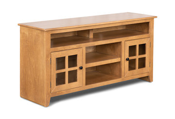 Add some ambiance to your life with the Grayville Park Electric Fireplace Media Console. Made of laminate, it has a rough-sawn wood effect for a lodge look. Two doors with an adjustable shelf behind them and open media area with access hole for wire management give you the freedom utilize the fireplace for your media needs. It will accommodate TVs in the 55" range. The fireplace comes with both log and crystals so you can choose your flame effect. Operating with a simple switch choose flame only or heat and flame. With heat, this unit supplements heat to a 400sf room.