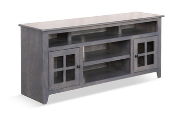 The Captiva 62" Media Console is made of hardwood solids and veneers. Fully assembled, it features 2 glass doors and adjustable shelves. The casual style works in any room. Stocked in 4 finishes.
