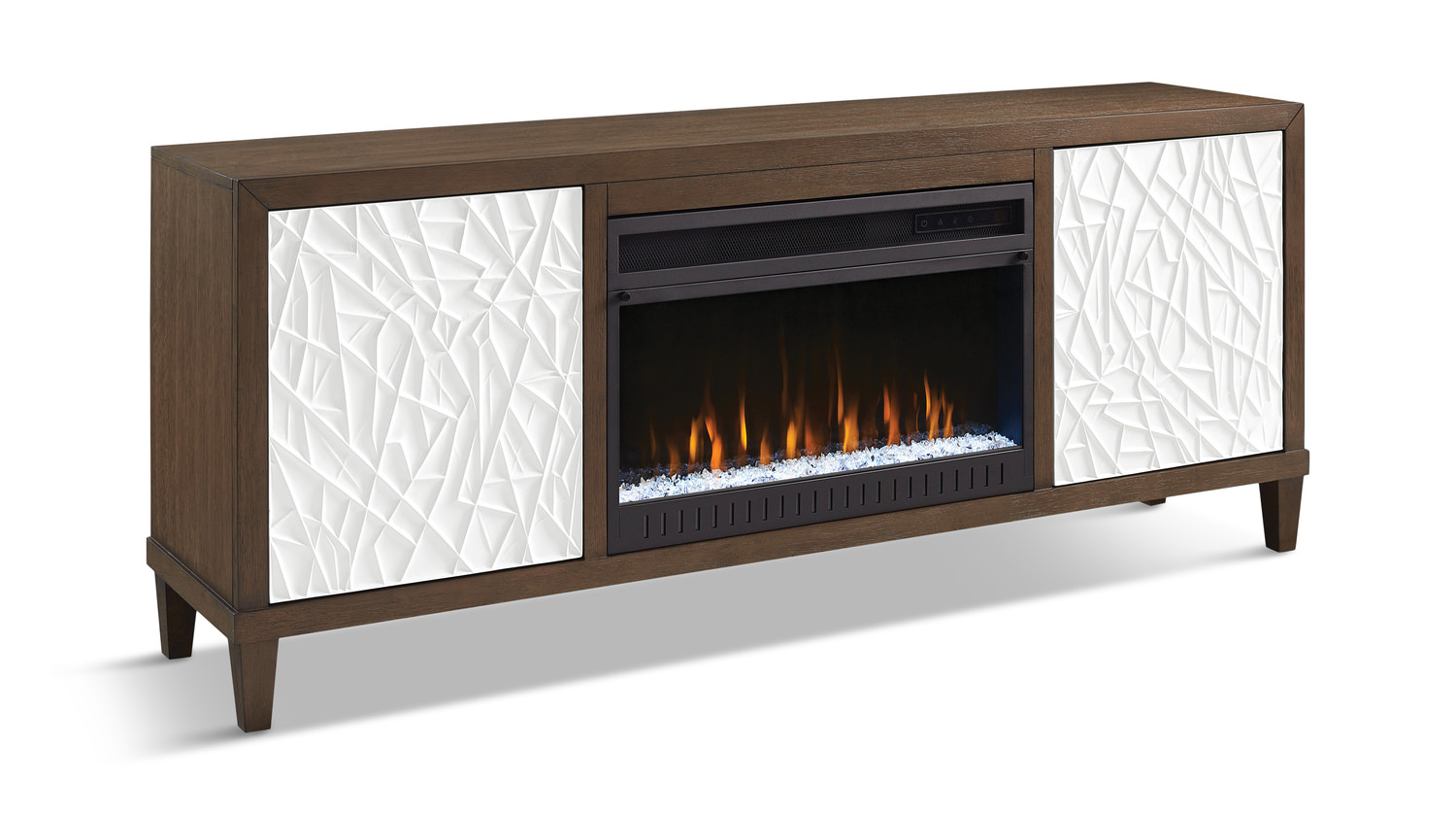 Experience the epitome of luxury and style with the Komodo 65" Fireplace Console by DOCK86. This exquisite piece accommodates up to a 70" TV, making it the perfect centerpiece for your entertainment area. The 26" crystal with remote adds a touch of elegance, while the Cool Touch feature ensures safety and peace of mind. Crafted with a two-toned finish in a rich brown color, this modern-style console exudes sophistication and charm. Enjoy the warmth and ambiance of the high-efficiency infrared heat, capable of heating up to 400 sq ft of space with ease. Assembly required.