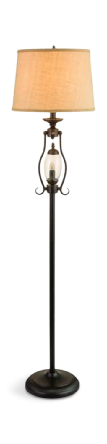 Illuminate your space with the charming Ottilie Floor Lamp from DOCK86. Crafted from durable metal, this lamp features a unique nightlight feature designed to resemble a vintage oil lamp, adding a touch of nostalgia to your décor. The slightly tapered beige lamp shade complements the lamp's black finish, creating a timeless and elegant look. Perfect for adding a warm glow to any room, this traditional floor lamp is a must-have addition to your home.