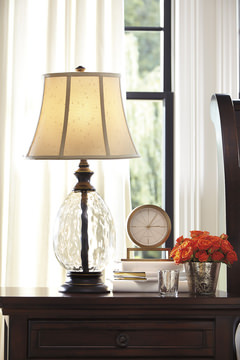 Rishona Table Lamp. Buy 1 Get 1 Free! Rishona lamp features brushed silver finish and softback white fabric bell shade. 3-way switch. Accepts both incandescent and CFL bulbs.
