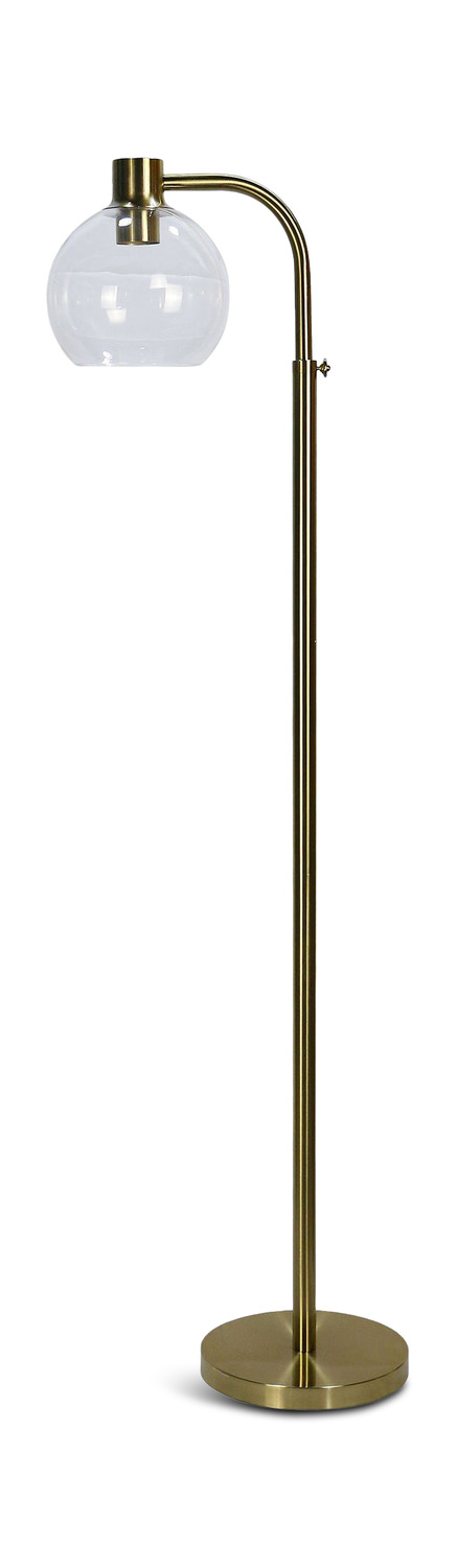 Elevate your space with the Sybil Floor Lamp from DOCK86. This sleek and modern lamp is designed to bring warmth and style to any room. The adjustable feature allows you to customize the lighting to suit your needs, while the soft gold finish and glass globe add a touch of elegance. Perfect for adding a cozy ambiance to your urban-style décor. Illuminate your space in style with the Sybil Floor Lamp from DOCK86.