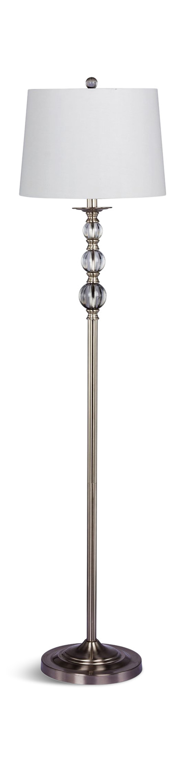 Introducing the Zosia Floor Lamp by DOCK86 - a stunning blend of modern style and elegant design. Crafted from sturdy metal and adorned with crystal clusters, this floor lamp adds a touch of sophistication to any space. The tapered white lamp shade complements the brushed steel finish, creating a sleek and polished look that is sure to elevate the appeal of your bedroom or office. The silver color adds a touch of glamour, making this lamp a versatile and stylish addition to your décor. Illuminate your space in style with the Zosia Floor Lamp from DOCK86.