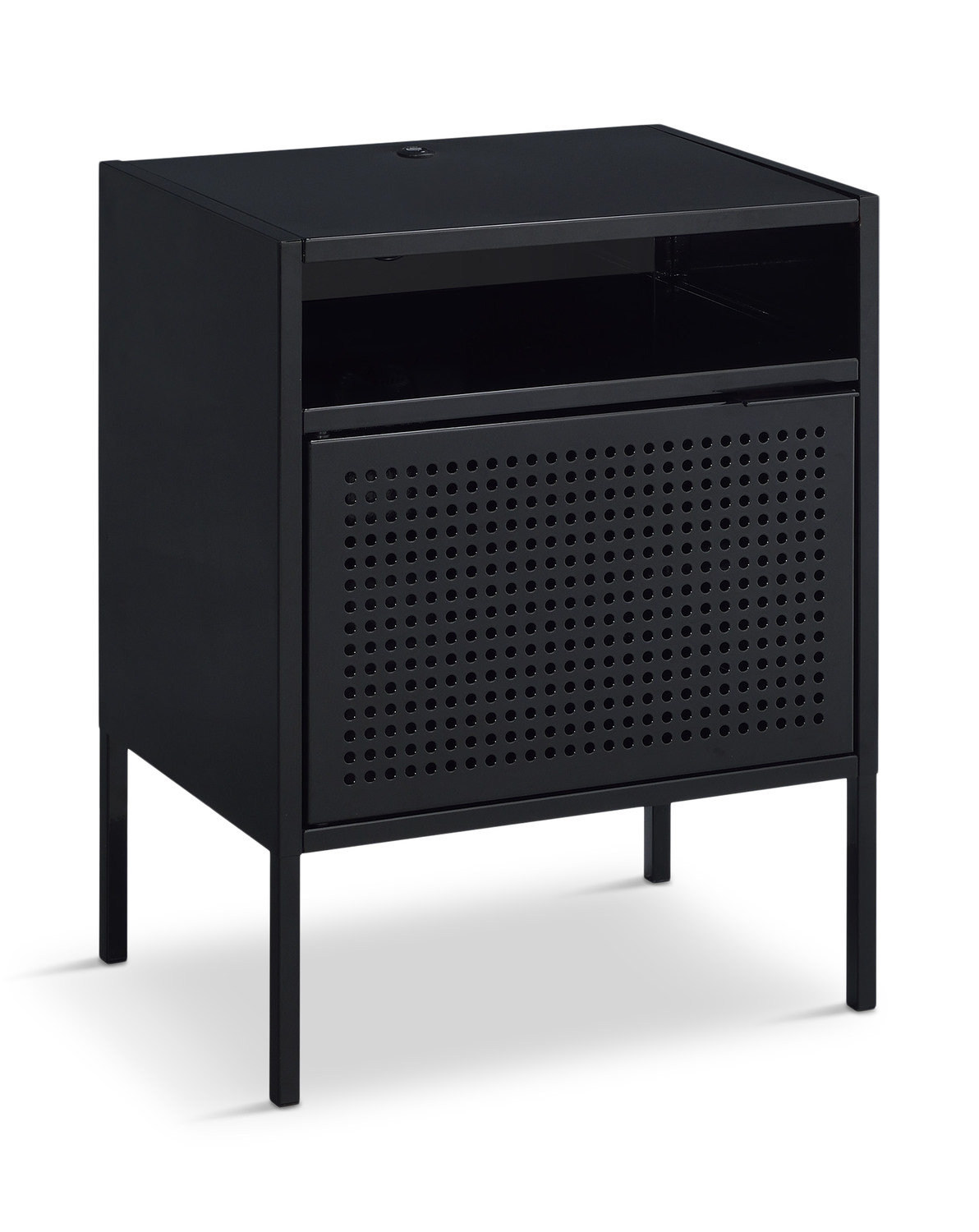 Introducing the stylish and functional Jax Metal Nightstand. This sleek nightstand is available in five trendy colors to complement any décor. Featuring a spacious cabinet and an open shelf, this nightstand offers ample storage for your bedside essentials. Crafted from durable metal, it is built to last. With the added convenience of a USB port, this nightstand is both practical and modern. Upgrade your bedroom with the Metal Nightstand and bring both style and functionality to your space.