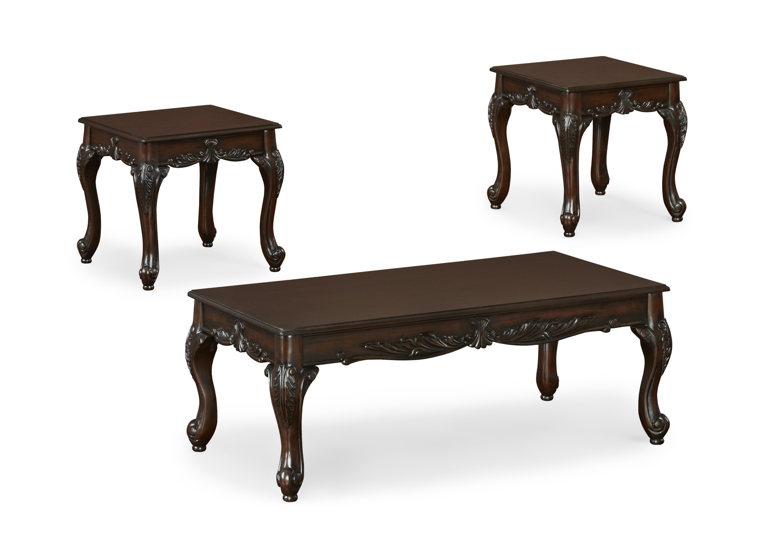 Introducing the luxurious Walter 3 Pack Table Group from DOCK86. This stunning set includes a coffee table and two end tables, each featuring beautifully decorated wood trim details, creating a traditional style that pairs wonderfully with the Walter Sofa. Perfect for any living room, this table group is sure to elevate your space with its classic charm and stunning character. Add elegance to your home with the Walter 3-Pack Table Group from DOCK86.
